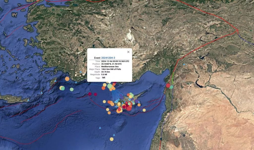 Μας ταρακούνησε σεισμός στη θαλάσσια περιοχή Κύπρου – Τουρκίας